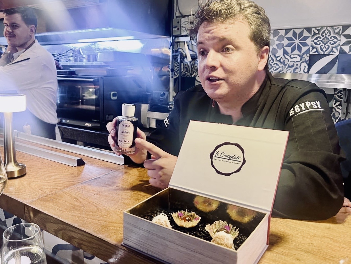 Monkfish blanquette with coconut milk and smoked fish sauce