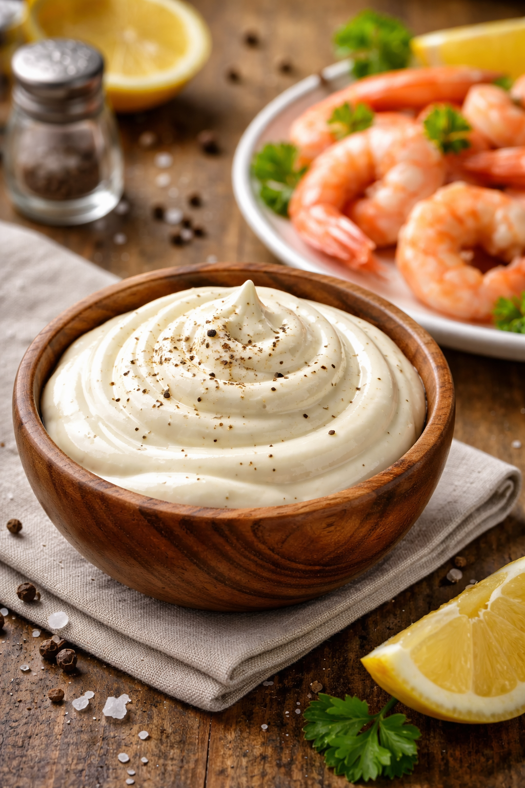 That recipe fits amazingly with shrimps and all kind of seafood (you can add a green lime zest to bring a kick). It’s also a perfect match with french fries (add a pinch of Anchovy powder), or sweer potatoes wedges.